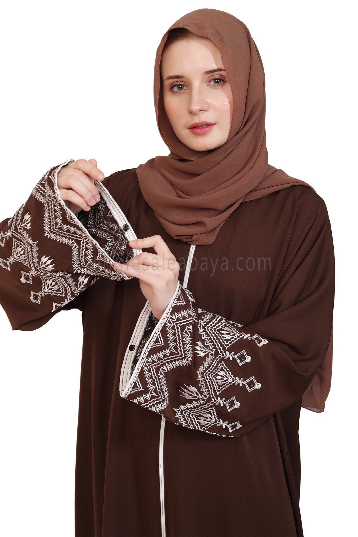 FRONT OPEN ABAYA WITH BUTTONS AND DETAILED EMBROIDERED SLEEVES