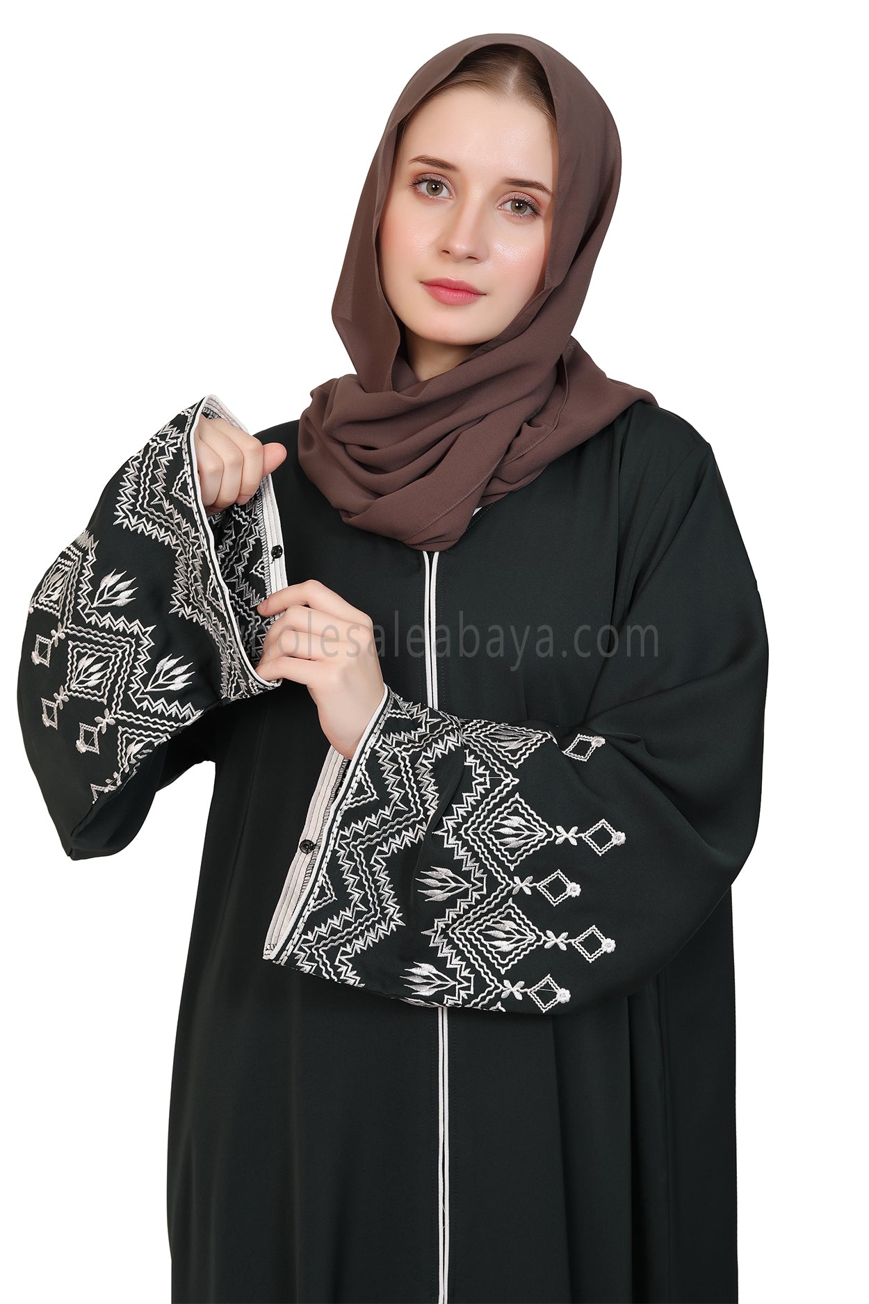 FRONT OPEN ABAYA WITH BUTTONS AND DETAILED EMBROIDERED SLEEVES