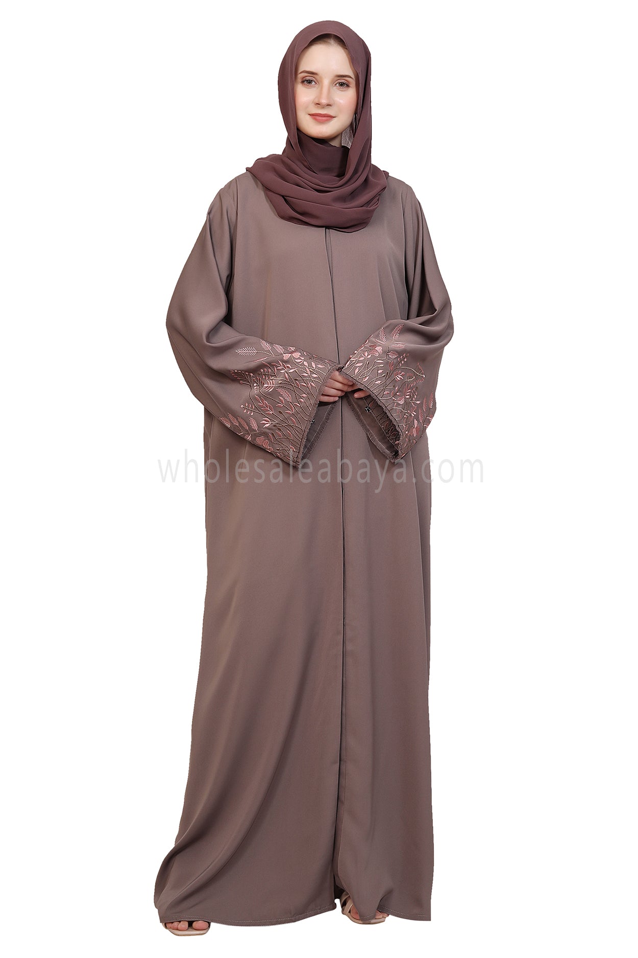 FRONT OPEN ABAYA WITH BUTTONS AND DETAILED EMBROIDERED SLEEVES