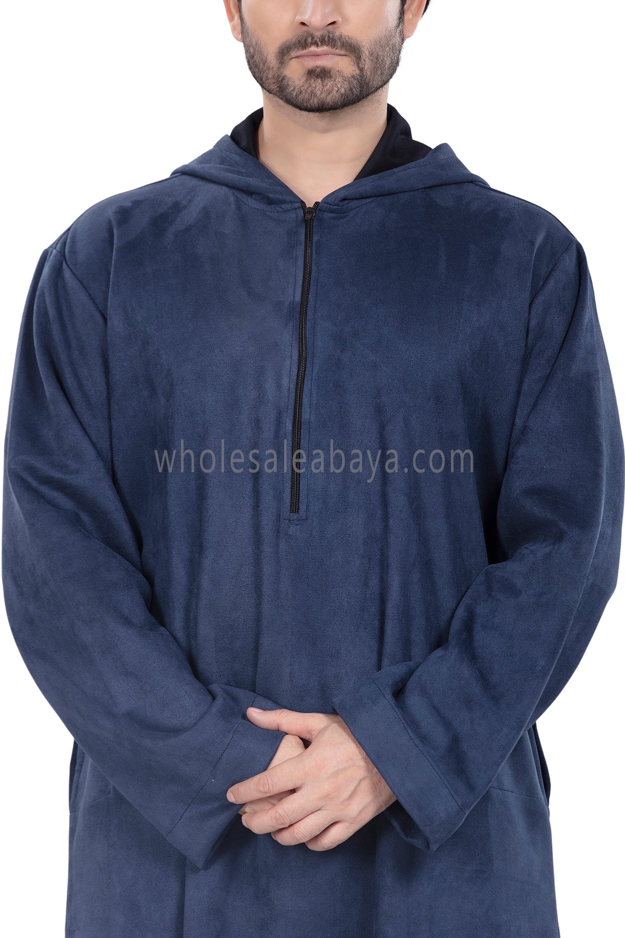 MEN'S HOODED THOUBE IN LUXURIOUS SUEDE FABRIC