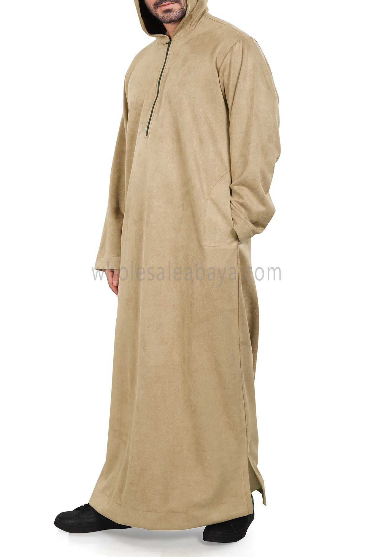 MEN'S HOODED THOUBE IN LUXURIOUS SUEDE FABRIC